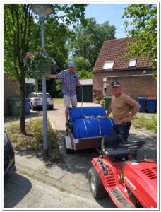 Weer extra water door Bram, Rob en Willem gegeven aan de bloembakken.