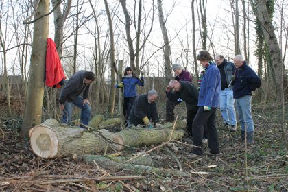 Er was veel te doen deze keer. Namelijk van 8 bomen die omgezaagd waren van takken ontdoen van de stammen. Daarvan tijdelijk diverse hopen gemaakt om later een bestemming te geven.