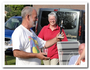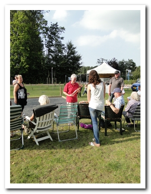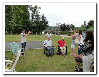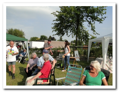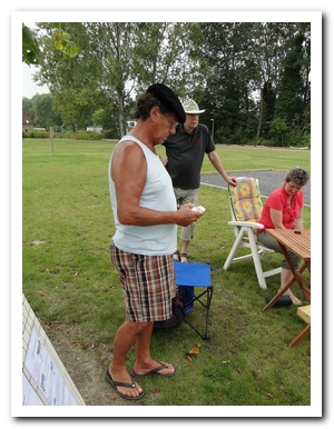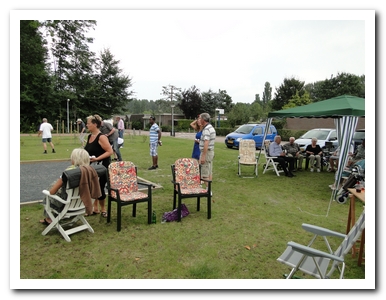 Er werd door Dick geloot d.m.v. speelkaarten wie tegen wie zouden spelen. Enkele groepen moesten spelen in het gras de anderen op de Jeu de Boule baan. Per toerbeurt speelden de teams op het gras of de jeu de boulesbaan. Best spannend, welke teams zouden als eerste de 13 punten halen? In de pauze tussen het spelen door kon iedereen genieten van een drankje en de versnaperingen. Het was reuze gezellig en het weer bleef ons goedgezind. Na het spelen werden de bekerprijzen uitgereikt door Noëlle. Christel Schipper kreeg de poedelprijs in de vorm van een lekkere fles wijn. De derde prijs ging naar Hans Lap, de tweede prijs naar Johan Bosma en de eerste prijs ging naar Dick Groenenwegen.