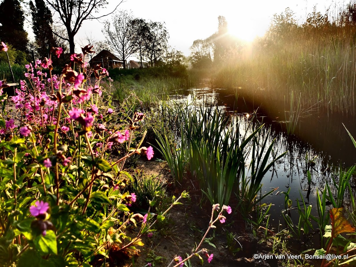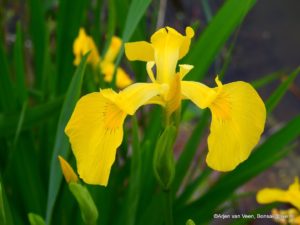 Een lange stoet van 40 wandelaars trekt door windbos, kwelbeek en verder. Ik herken Regien, zij heeft mede de tocht van haar wandelclub door onze pracht buurt georganiseerd. Zo mooi kan het zo dicht bij huis zijn! “Velen zullen nog een keer terug komen”, zegt Regien. Langs de kwelbeek is het ooh en aaah. De gele lissen bloeien nu massaal.
