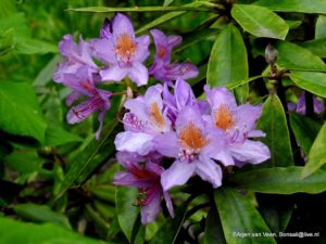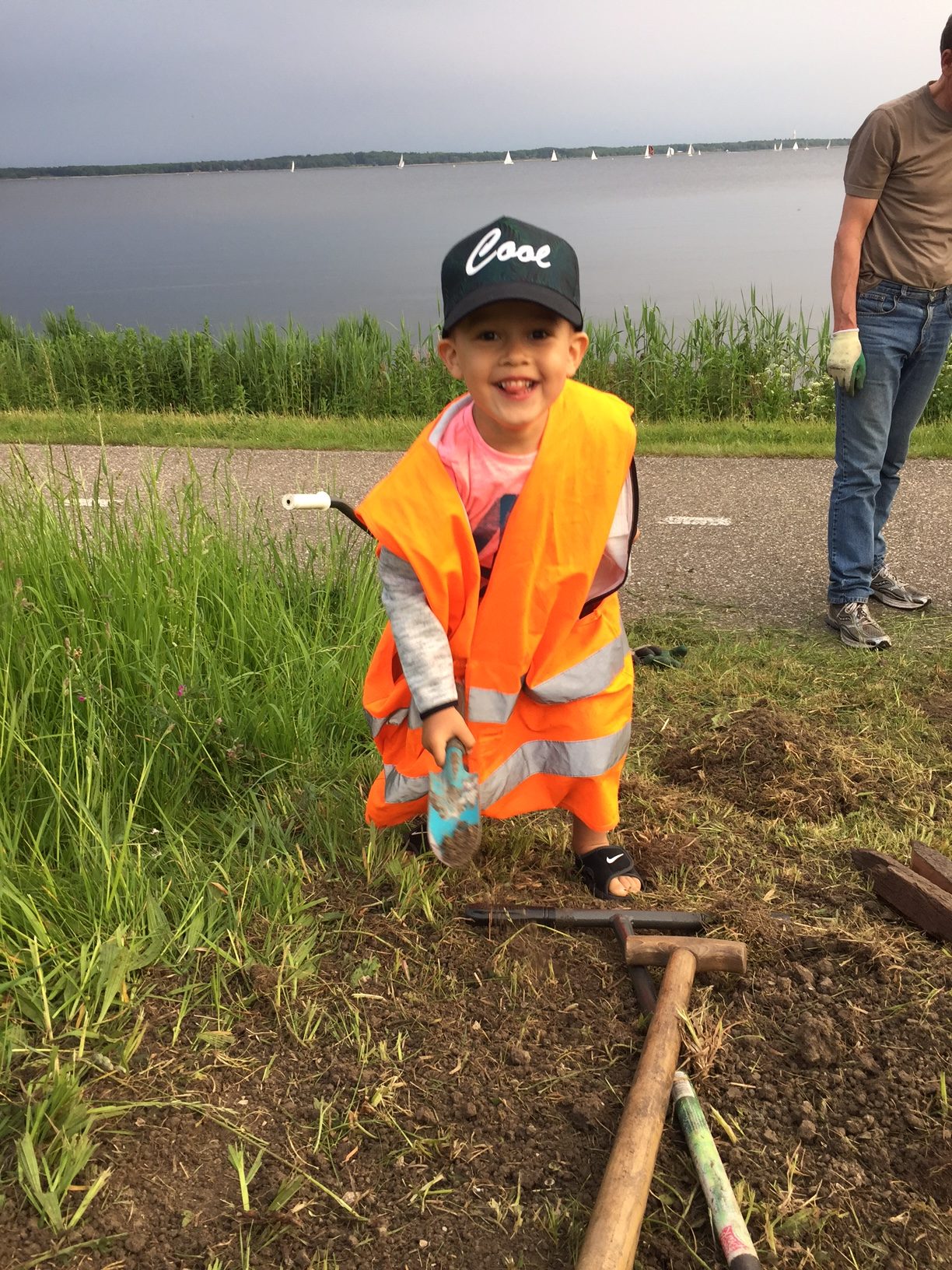 Rob en ik planten een nieuwe struik in de bosborder. Waaauw, wat staan de akeleien er hier geweldig bij.