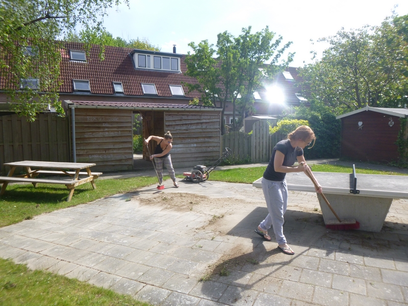 Maaibaas Bram schiet deze week voor de tweede keer te hulp. Hij pakt de KUBOTA en maait het buitengebied. De gemankeerde maaiploeg van dienst is hem uiterst dankbaar. Geïnspireerd door de acer trekkers gisteravond kruipt Lap het dak weer eens op. Hij weet dat daar nog een “paar” acers staan. Bij het volgende wijkoverleg zal hij met het voorstel komen het sedum dak te vervangen door een acer dak. In het vogelbos trekt Lap aan iets anders. Hij trekt knokige Japanners uit de grond.
