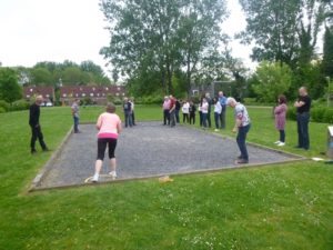 Bij de jdb’ers is het druk en is er een exotisch bezoek. Een Chinese handelsdelegatie doet de baan aan en denkt dat hier een variant van het hun zo bekende ping-pong spelletje wordt gespeeld. Johan, onze tolk verneemt de vraag; “ik dulf het haast nie te vlagen, mag ik ook ploberen?”. En even later wordt met de vlakke hand de kogels heen en weer gespeeld.