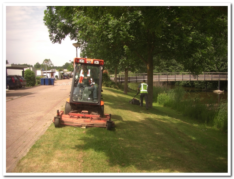 Vandaag is het gehele gebied gemaaid. Op het grote veld na. Dat is nog niet echt nodig. Ook wordt de kantensnijder van stal gehaald. Het ziet er weer gelikt uit. Goed gedaan jongens. Door de droogte is de enorme groei van de vorige weken in een rustiger vaarwater gekomen. De ene week zie je het gras groeien en de andere week zie je het vergelen. Het kan verkeren.