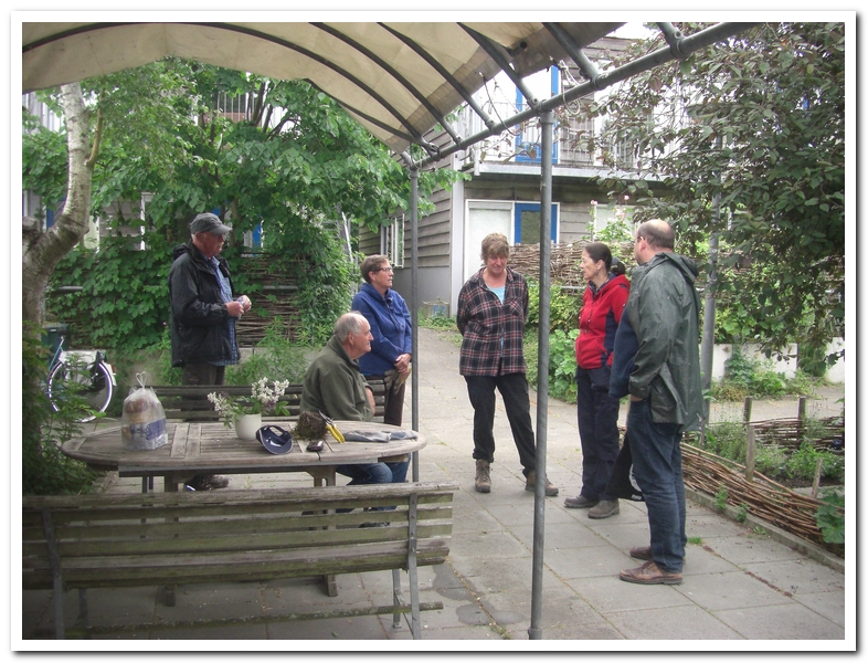 In de avond is er een bijzondere transformatie van Braamsluipers naar Rietzangers. De start is in de wijk, de finale bij de kwelbeek en de afsluiting in de tuin van Martin. Regien, Nicolette, Greet, Hester, Lap, Ruud en ik starten met de haag langs het fietspad, Y&H border en de border bij de Hoekbrug. Daarna voegt een ieder zich bij de JJ’s (Johan en Joop). Werken aan de paden en het ontrietten van de dijk.