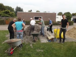 Volgende keer gaan we weer verder maar eerst nog wat zand bestellen. De foto’s werden gemaakt door Johan, Marion en Rob.O. De 16 harde werkers waren: Kees, Ton, Hans, Jos, Joris, Paul, Henk, Rob.S, Mike, Nicolette, Yvonne, Kleine Bram,