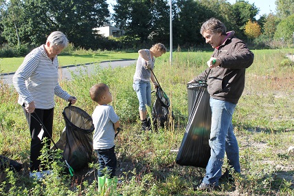 In het kader van burendag doet Ruud zijn best op Lapland, schoffelen Hans en Erica de rozenperken en zijn bewoners van de flat naast AH bolletjes aan het planten. Zij begroeten ons vriendelijk. Hester Greet, Leida, Ine, Eva, Regien, Loraine, Tim, Daan, Guido, Lap, Ruud en ik storten zich op het zwerfafval rond AH. Wij helpen de buren van de Laren hun buurtje schoon te maken. Tot maandag jl. kon je hier over het vuil lopen. Maandag is er door de reiniging voor het eerst in de geschiedenis van de Laren geruimd. Aan ons de opgave te laten zien wat zij hebben laten liggen en wat er in een week is bijgekomen. Ook constateren wij tevreden dat er een afvalbak is bijgekomen. Die gaat door Aquamarijn geleegd worden, horen wij. Start is een spelletje ringsteken.