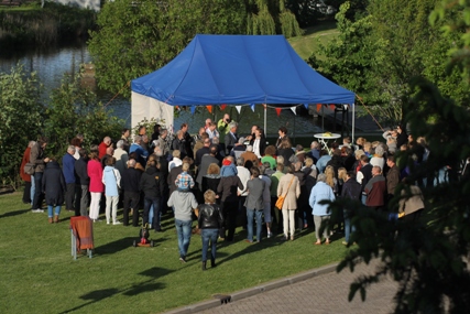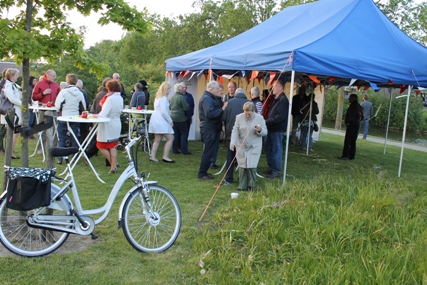 Iemand telt 120 aanwezigen. Om kwart over 7 komt de limousine met de burgemeester aan. Ik geniet dan van de gastvrijheid van Michael en van boven af aanschouw ik de officiële opening. Een hemels geluk.