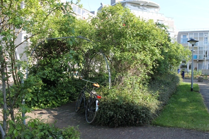 Om 09.00 uur heb ik een afspraak met Yvonne bij de Overloop. Daar wordt een gedeelte van de tuin gesloopt en de vraag is of de EZH nog iets kan gebruiken en kan helpen. Ik ben direct enthousiast over de rozenboog.