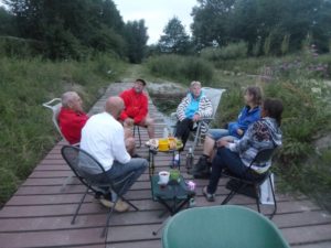Maudy, Regien, Mike en ik gaan op safari rond het Naardermeer. Inspiratie opdoen voor beek beplanting en beheer. Na afloop is het gezellig de dag afronden op onze vaste stek. De zwanen komen gezellig bij ons zitten.