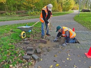 “Lap, wat heb jij gedaan vandaag?” Lap; “Samen met Martin hebben wij op diverse plekken de bestrating gerepareerd ivm.wortels of mollen.