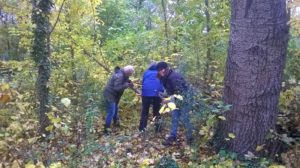 Marrie, Greet en Anneke hebben een begin gemaakt om een open plek te realiseren door enkele boompjes te verwijderen om meer licht te verkrijgen voor de groei van de lage beplanting.