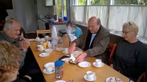 Hans heeft de duizend knoop gecontroleerd en nog maar één plantje gevonden. Zullen we het nu onder controle hebben? Tijdens de koffie, verzorgd door Elise en Rob hebben we afscheid genomen van Dick de Jager onder het genot van heerlijke taart.”