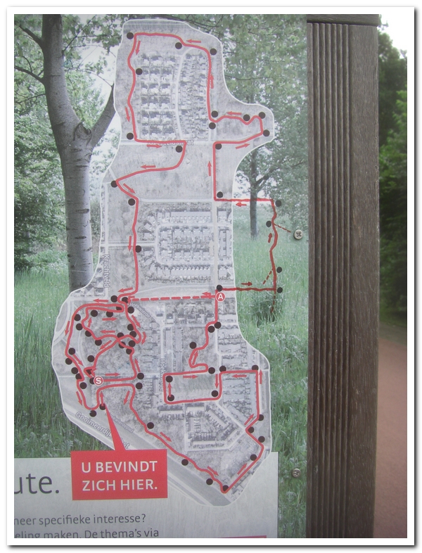 Regien en ik voeren groenafval af dat nog in de wijk lag. Lap past de route van de rode wandeling aan. Er gaan paaltjes weg en bij de kwelbeek komen nieuwe te staan. Zie ook de QR-code “Algemene beschrijving rode wandelroute”.