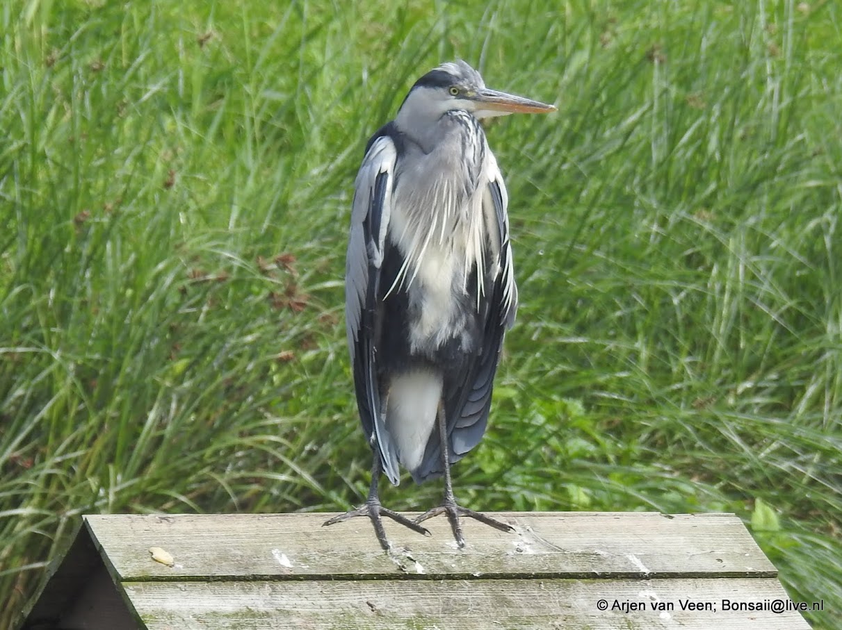 Regien maait het begin van de wijk. Na twee uur is het te nat om door te gaan. De rest van de dag blijft het motteren en regenen. Wat een sombere , kille dag. Bah. Is ook de reiger van mening.