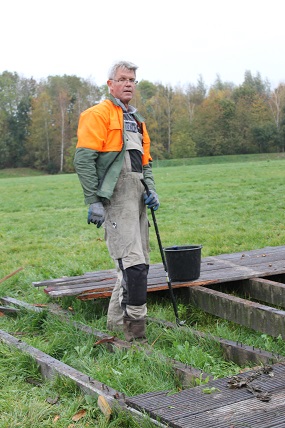 Mike; ”Alle plastic planken zijn nu vervangen. De laatste meter met oude houten planken gaan we ook nog vervangen. Dat doen we dan over 2 weken. En dan doen we meteen het afkanten met cirkel- of kettingzaag.”