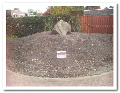 Voordat we beginnen aan de inrichting van de Hoeksteen wierde even vast een tijdelijk bordje met het gedicht van Wouter,want later krijgt dit in een andere vorm een mooie bestemming.
