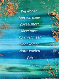 Plek dichteres Paula is verguld dat haar ode aan het meer ook een plekje op de plek heeft gekregen. ”Waar Paula?” “Nou bij het bankje van Maryse”.