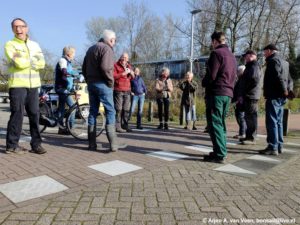 Met gemeente speel voorziening deskundige Mark lopen ik met zijn speciale meet en folter apparatuur( een nep kinderschedel, een nep kinder nekje en nep kinder vingers) de speelvoorzieningen op de plek langs. Op enkele plekken zijn aanpassingen/verbeteringen gewenst en noodzakelijk. gebroken vingers en verwurging willen wij niet op ons geweten hebben. “Dank Mark voor je bruikbare tips”