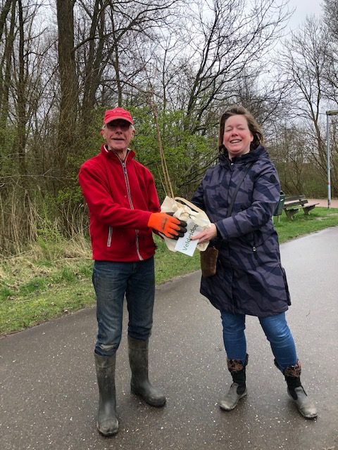 Om 900 uur worden de plekkers van de dag opgewacht door Sandra uit de Velden, zij heeft een boompje als cadeau voor de plek.