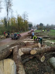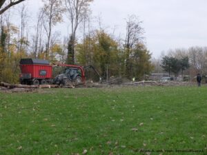 Met zo min mogelijk schade aan het vogelbos worden vier risicovolle abelen verwijderd. Sommigen laten een traantje vanwege het verdwijnen van een mooi uitzicht. Echter het is een onvermijdelijke actie .De vervanging staat er al deels en is verder in aantocht. De speelvoorziening op het grote veld wordt verjongd.