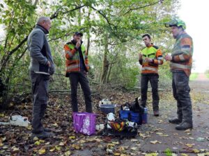 Denk niet dat wij in trance daar een potje natuurbeheer spelen. Neen het is hier geen stiltegebied. Johan heeft boeiende anekdotes. Zo vertelt hij ons dat hij thuis begonnen is met een orchidee kwekerij. Een kleine kwekerij voor ook hele kleine orchideeën. Johan is voornemens om die hele kleine orchideetjes volgend voorjaar te gaan uitplanten in de weide. Ter faveure van een uiterst spectaculaire melding op waarneming.nl. Ook vertelde Johan ons dat hij tevens valken en andere roofvogels gaat telen. Hij is het zat dat er zoveel vogels bij de buren rond vliegen. “Die zwerm met kauwtjes is er niks bij” , mompelt hij.” Daar moet een einde aankomen dus wij zetten een ecologisch verantwoord middel in de strijd. Predatoren, dat is de oplossing”. Met een uurtje is de klus op de weide geklaard. Na afloop halen Mike en ik nog wat materiaal op geschonken door een buurman van Mike. “Kunnen wij weer iets van maken”, oppert Mike blijmoedig.