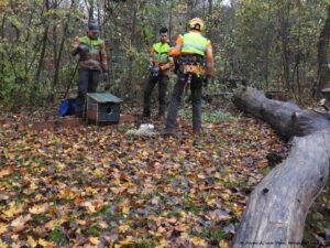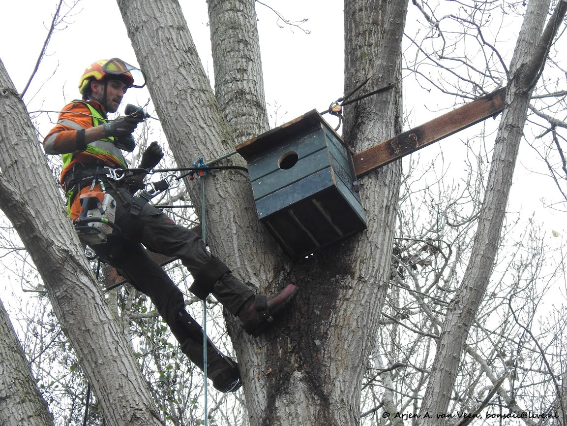 Aan het eind van de ochtend wordt als toetje een uilenkist in een hoge boom op DE PLEK aangebracht. Wie weet krijgt onze buurt uil een soortgenoot als buur.