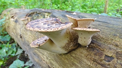 Zeker in het voorjaar en zelfs in de zomer zijn er nog paddenstoelen te vinden. Zo heb ik gisteren onderstaande exemplaren kunnen fotograferen. De peksteel had maar liefst een doorsnede van 15 cm. De zadelzwam kan nog groter worden maar dit keer is het een jong exemplaar.