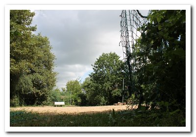 Wij lopen met een boog om de burcht heen. Je passeert het beachvolleyveld.