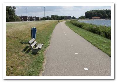 Je gaat over het fietspad de plek op waar niet gebouwd mag worden.