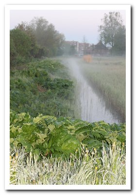 Kwelsloot in de vroege ochtend met berenklauw.