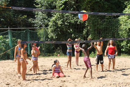 Foto van de beachvolleyballers aan het begin van het seizoen en tevens schoonmaakploeg van het volleyveld,april 2012.