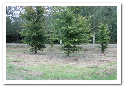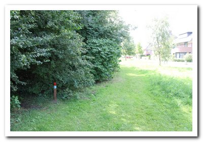 Met de rug naar het bos zie je rechts de plek waar niet gebouwd mag worden.
