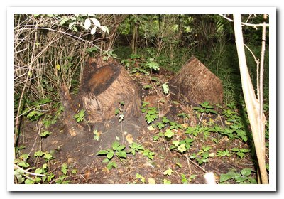 15 meter verder zie je de stobbe van de dikste wilg van het bos. Omtrek 7,5 meter.