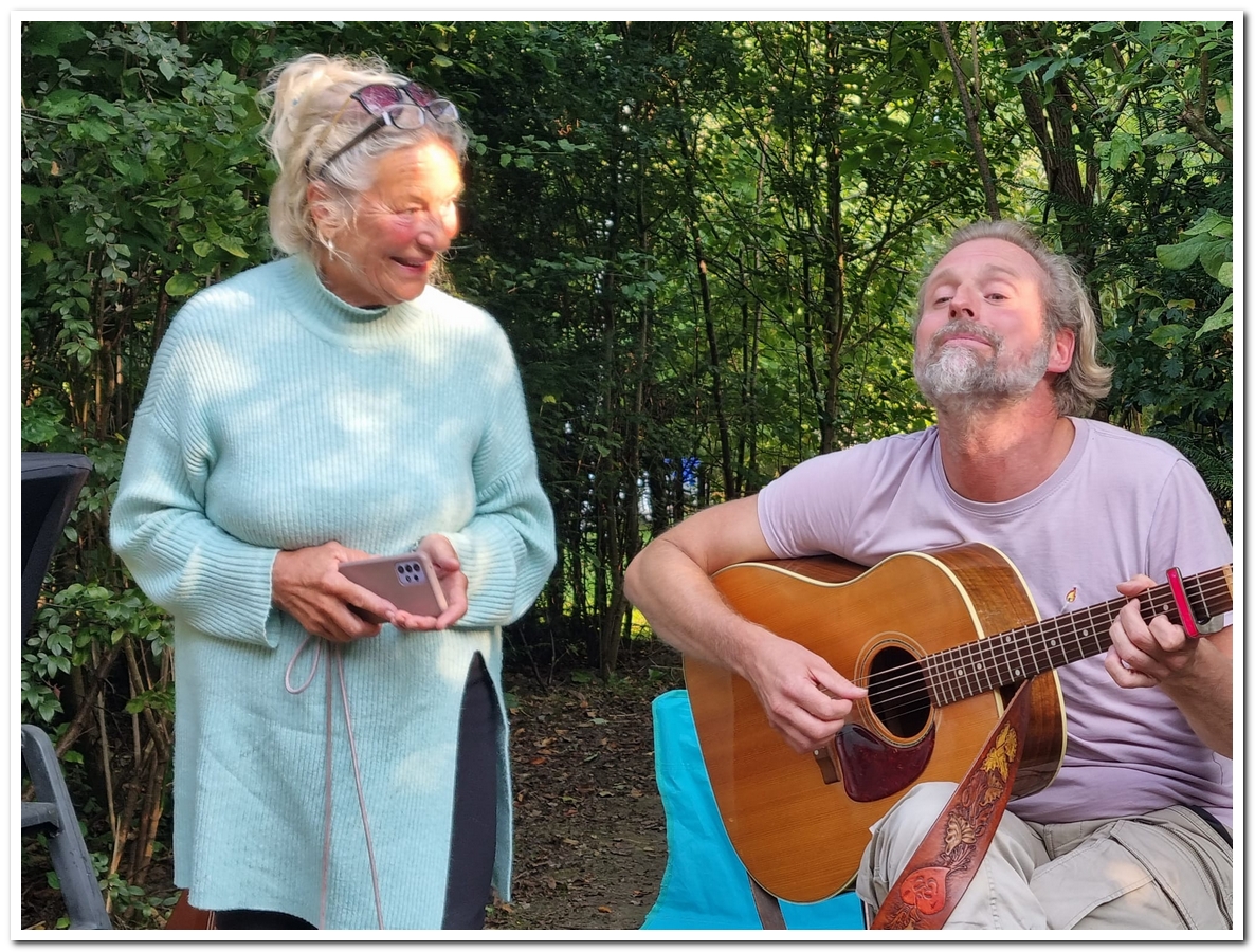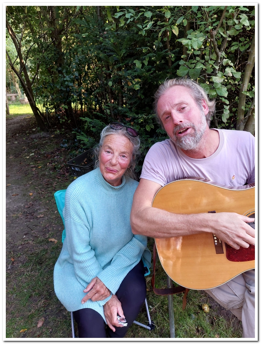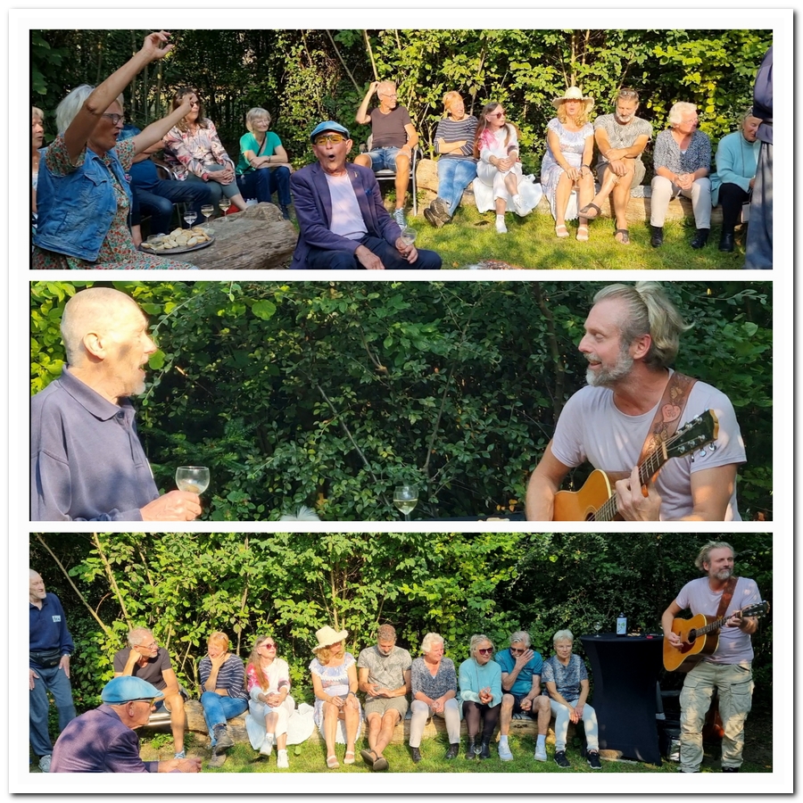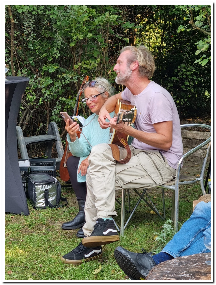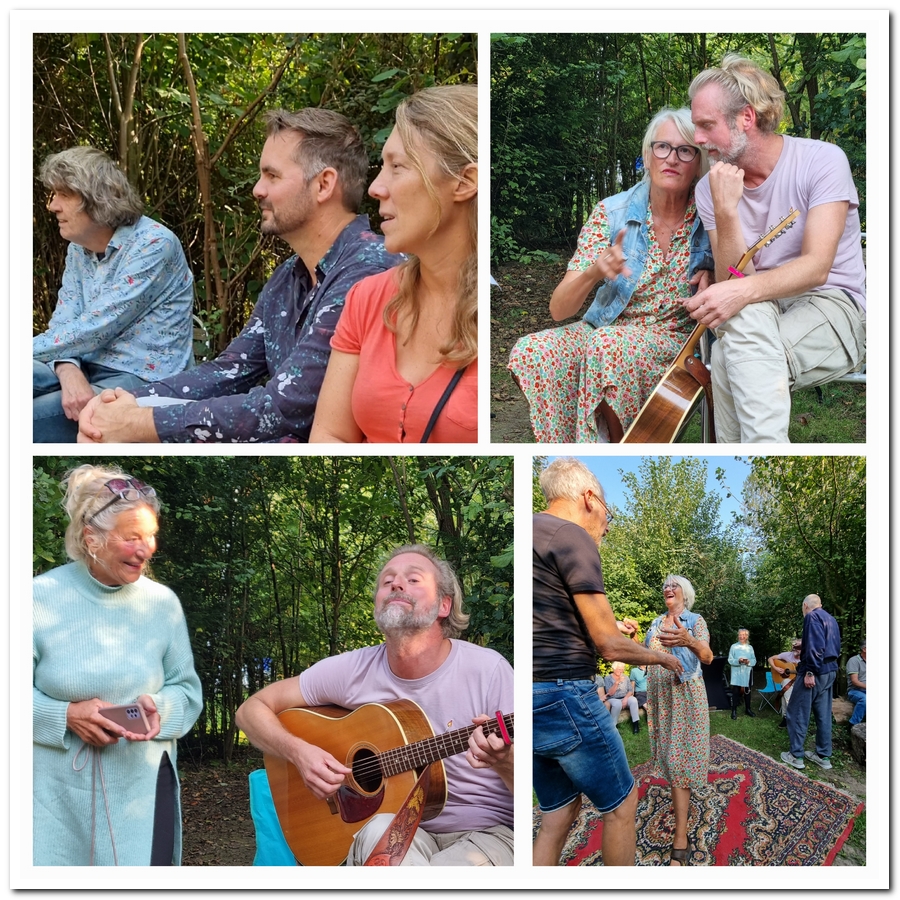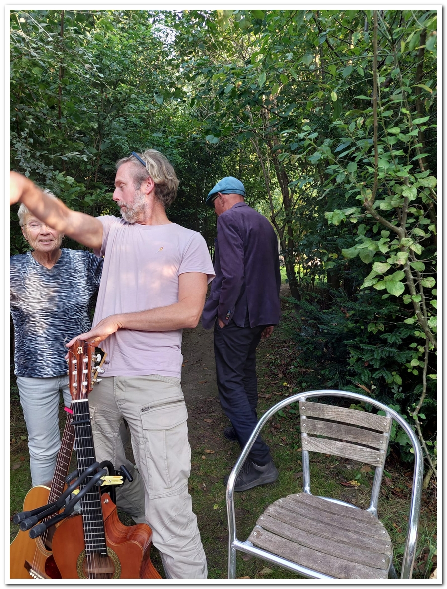 We ( Jos en Carol ) rollen het beroemde Perzische tapijtje weer uit op een mooie zonnige dag (do 19 sept) en wisten Daniël van der Zee weer te strikken om ons extra op te vrolijken met zijn heerlijke gitaarklanken en zang.