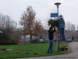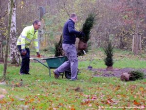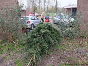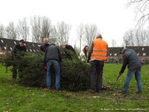 HB’s in de winterstalling. Veel , heel veel werk verzet in borders en bos. Meer dan 100 bomen en struiken geplant. En als kers op de taart een mooie kerstboom op het grote veld. 45 deelnemers zijn er trots op.