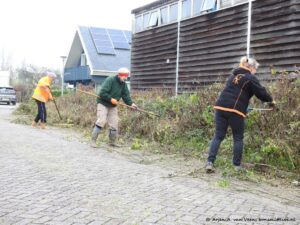 Er is werkvoorbereiding of een vroege start op diverse plekken. Zo zijn Thom en Elly bezig aan de ene kant