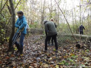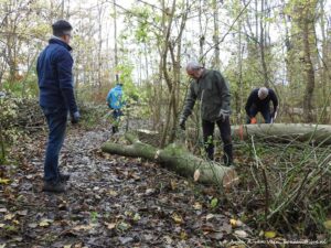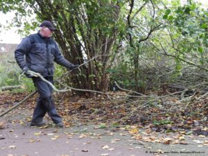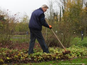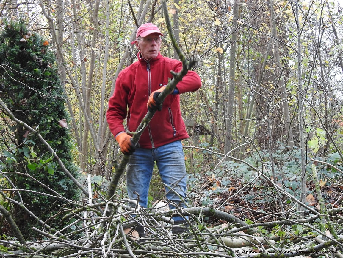 Zo een kilometer uit elkaar. Daar tussen in verwijderen Rob, Bram , Willem en Lap als afsluiting van het HB seizoen de uitgebloeide HB’s. “Pas op, de een is zwaarder dan de ander, kreunt Bram.” Afhaken en