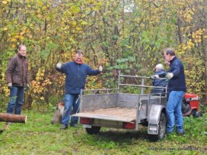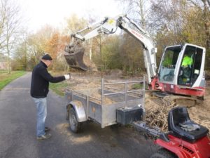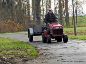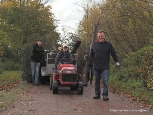 En tussen de bedrijven door halen en ruimen Bram en ik het gereedschap en voeren Nike, Arjen en ik het groenafval af naar de korf. Al met al een pittig dagje met een mooi resultaat. Een waardige investering in elkaar en in de toekomst op de korte en wat langere termijn.