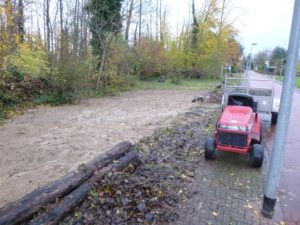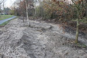 rijdt tig keer van wadi naar het vogelbos om aldaar het zand samen met Bram netjes te verspreiden.