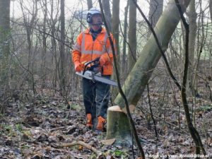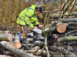 Rudy start de dag met zagen in het windbos. Ton sluit aan.  Rudy maakt er een lange zaagdag van en doet de zaagdag van gister niet dunnetjes maar dik over.