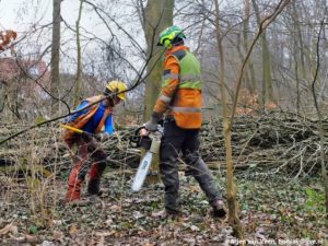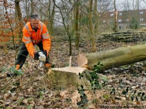 Ik heb een gesprek met Harm Slagter van de gemeente. Hij is met ons van mening dat de massale kap van zieke essen een goede herplant verdient. Hij zal zorgen voor een kwalitatieve vervanging in het windbos en krachtbos. Ook regelt Harm een paard die de te hergebruiken stammen uit het bos zal gaan slepen. Dat zal volgende week donderdag gaan gebeuren.