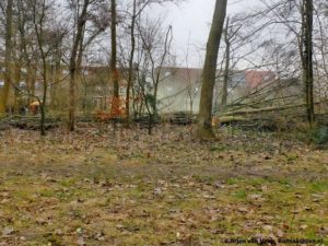 Na een uur zijn de mannen weg en is de ravage groot. Ruimen maar. In de beproefde taakverdeling. Regien, Johan, Kees en Lap voor de afvoer. Arjen, Rudy en Jos voor het zaagwerk en de overigen ruimen en rillen.