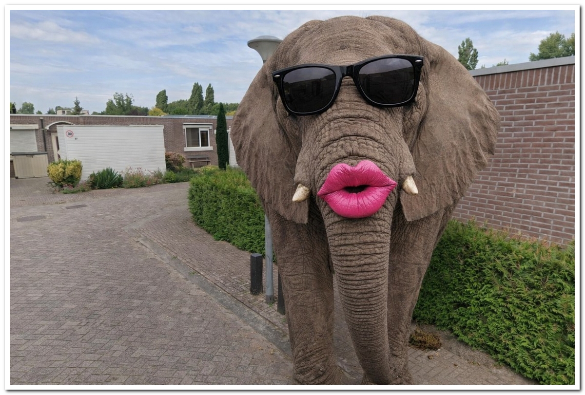 De olifant voelde dat er iemand achter hem stond en draaide zich snel om en stond oog in oog met José. Ze kon hem net op tijd nog op de foto krijgen om daarna snel naar huis te rennen. Waar de olifant hierna naar toe is gegaan is niet bekend. Wees daarom voorzichtig en oplettend als je in de wijk loopt.
