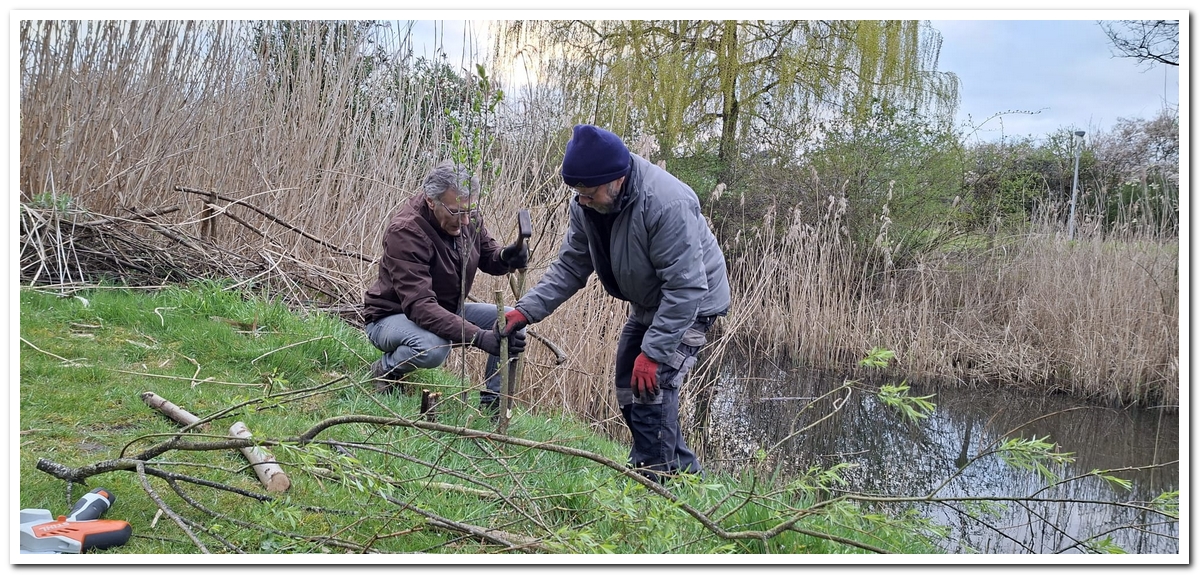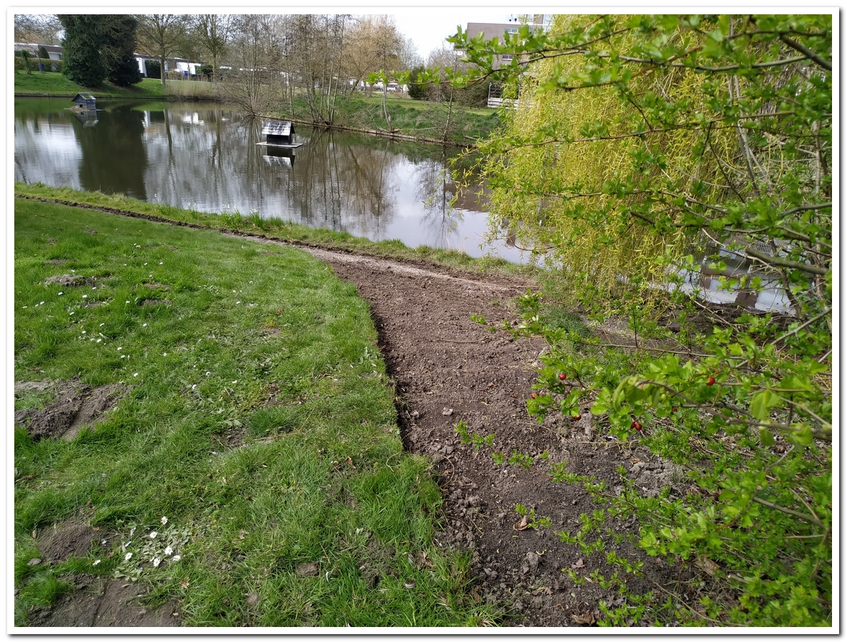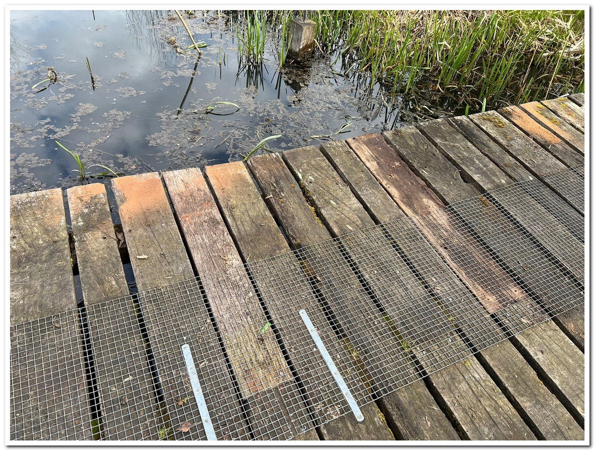 Ruud en Mike hebben weer 2 rotte planken op de kwelbeek vlonder vervangen en enkele andere planken vaster geschroefd.