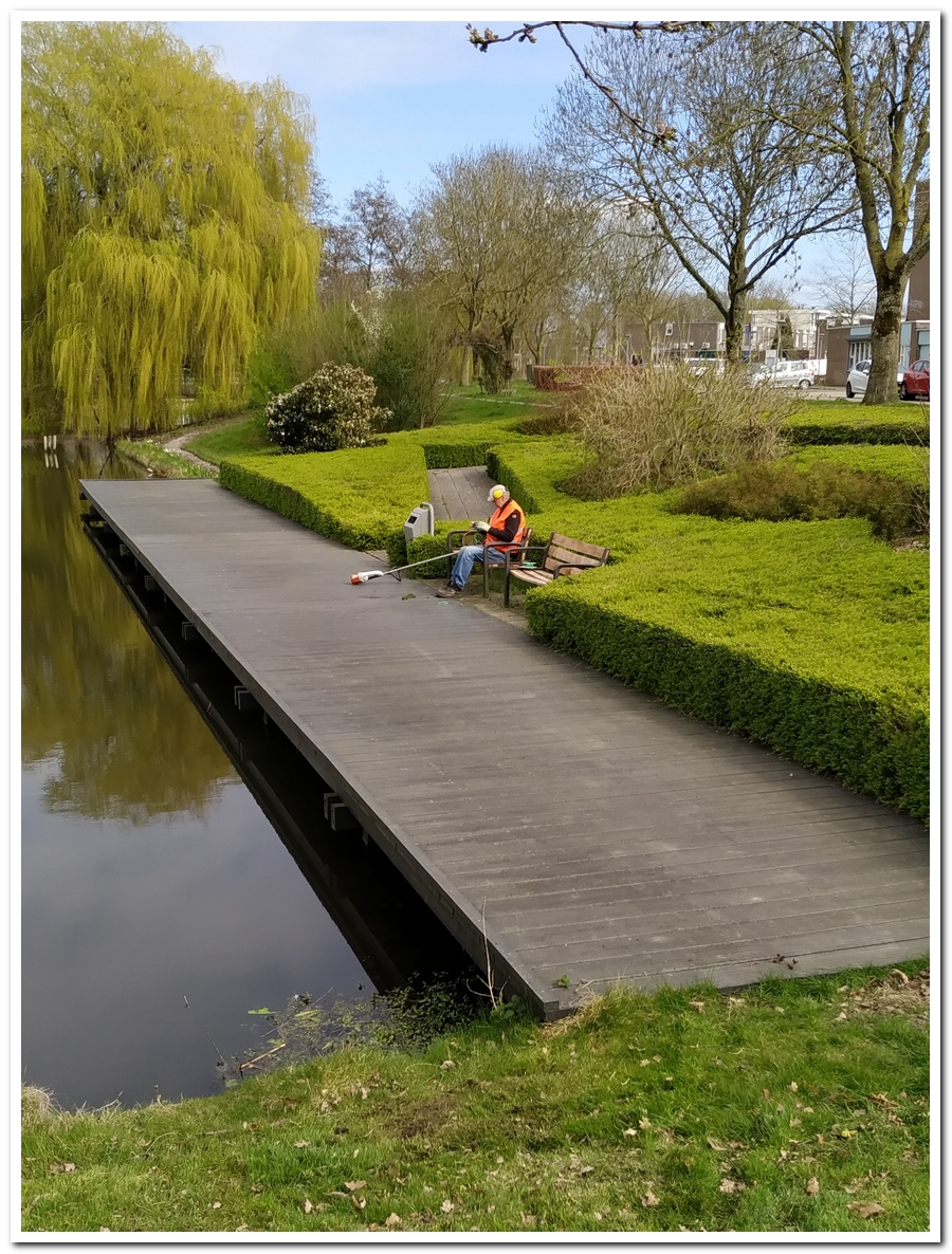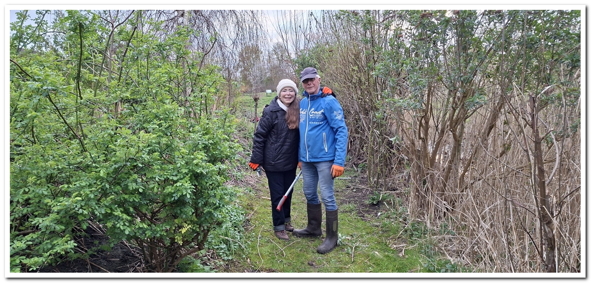 Maudy heeft bladeren geharkt, Ruud is gaan vissen, en Jos bosmaaiert er al weer flink op los.