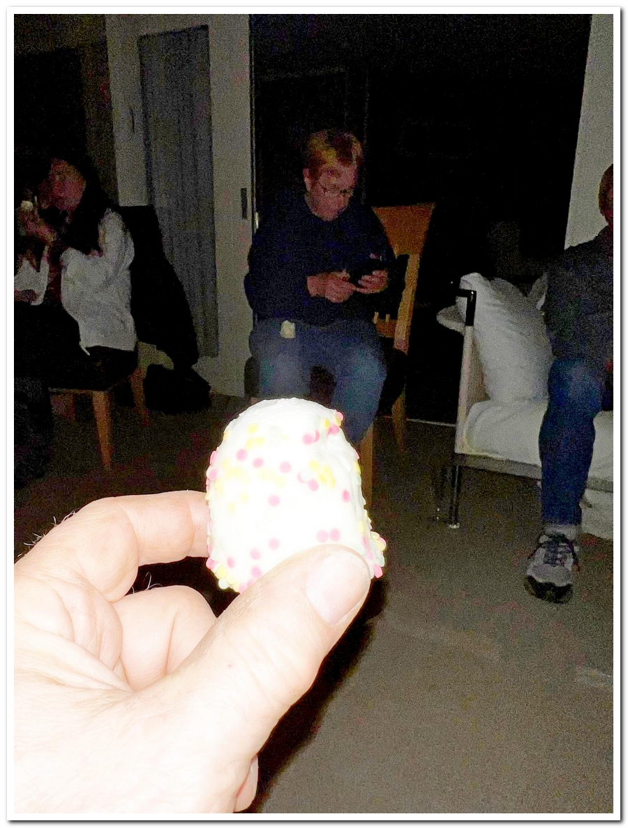 Was gezellig en warm in mijn serre, geproost op het nieuwe seizoen met bubbels en een soort zoen, wit met spikkels (oude naam mag niet meer gezegd worden)