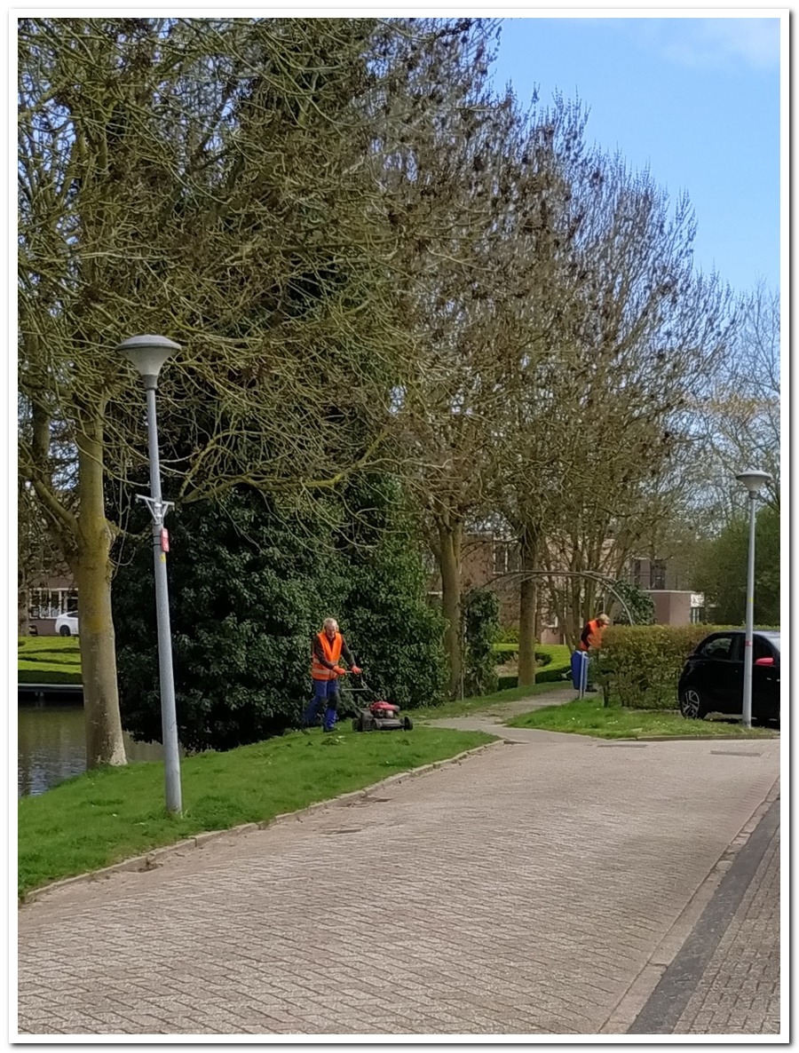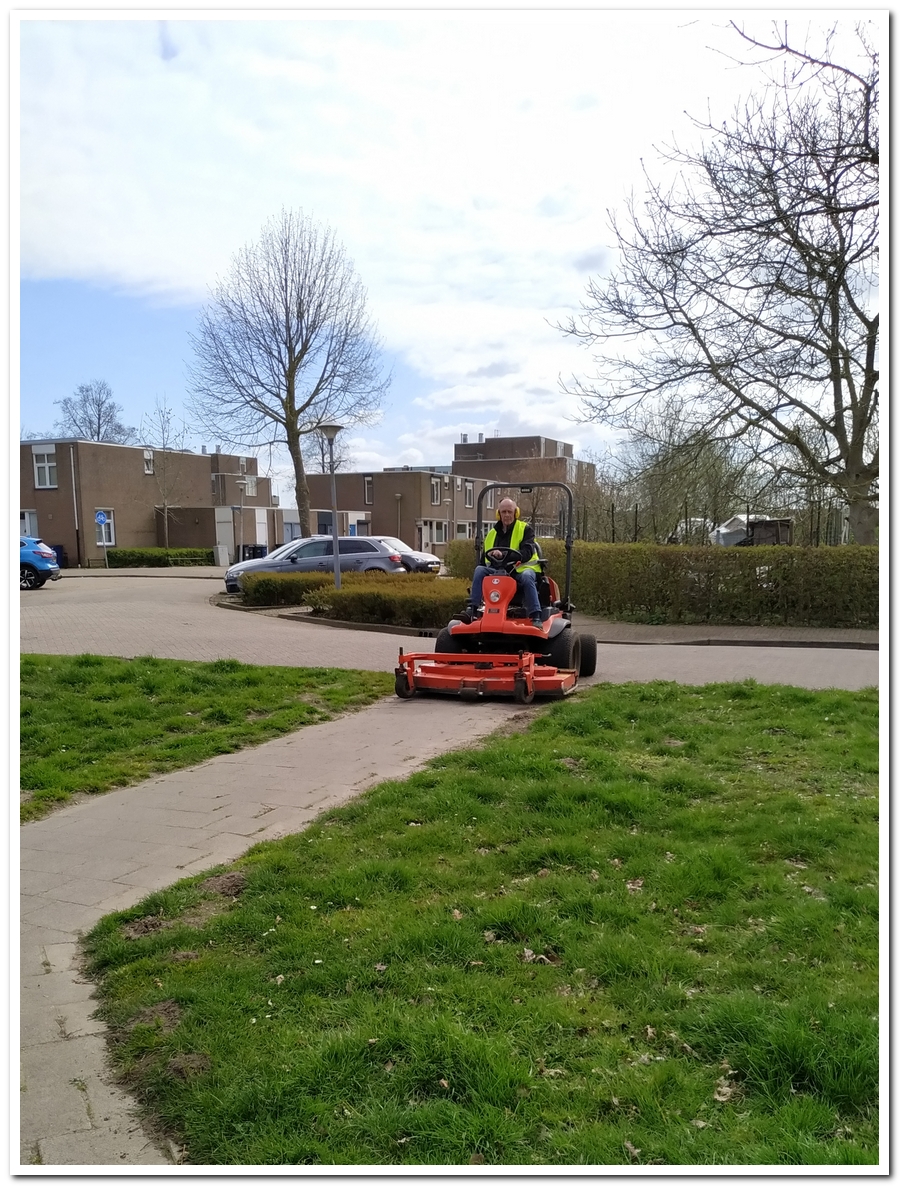 Het 1e maaimoment van dit jaar. Te beginnen met maaien van het gras door Willem.