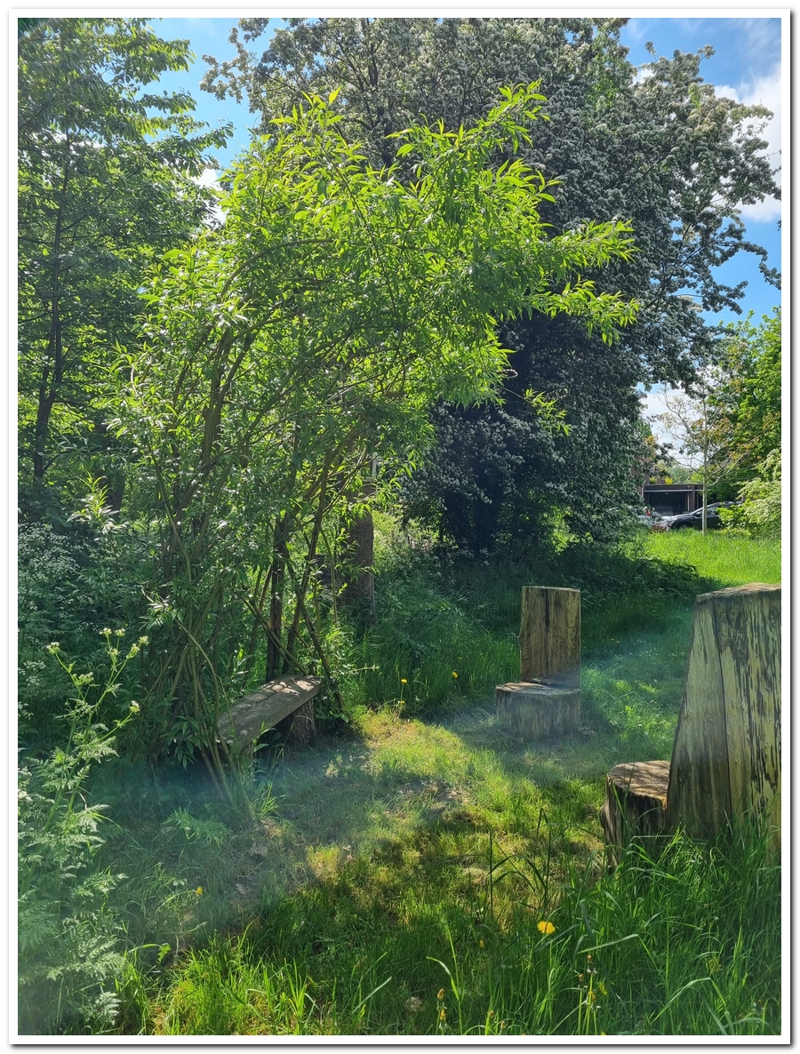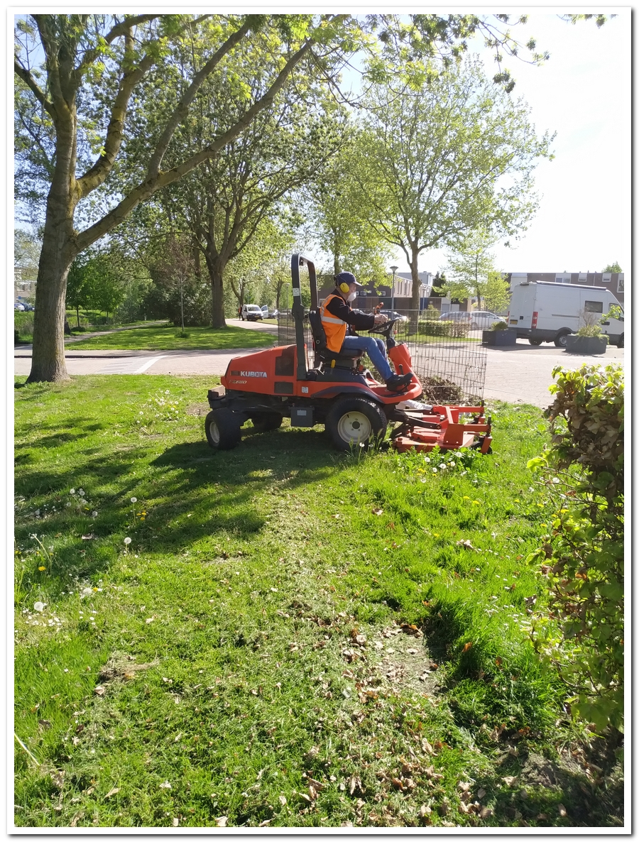 Ikzelf heb een rondje door de wijk gemaakt om de overhangende takken weg te knippen en daarna alle wandelpaaltjes vrij te knippen van gras. Foto van Jos.