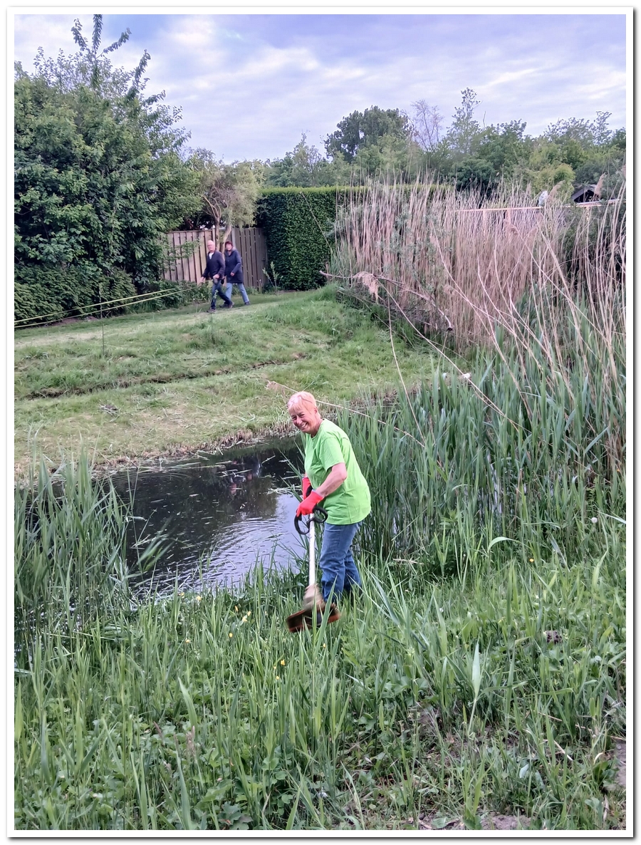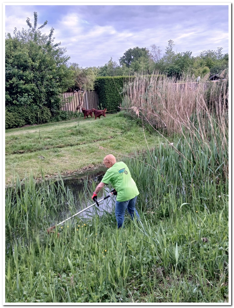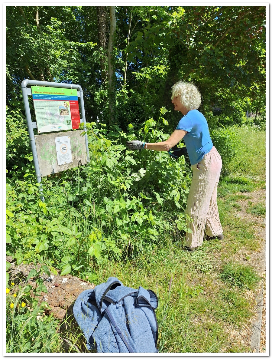 Corien ruimt weer hopen op, veel bramen, die uitgestoken worden door Levien en water Jos.